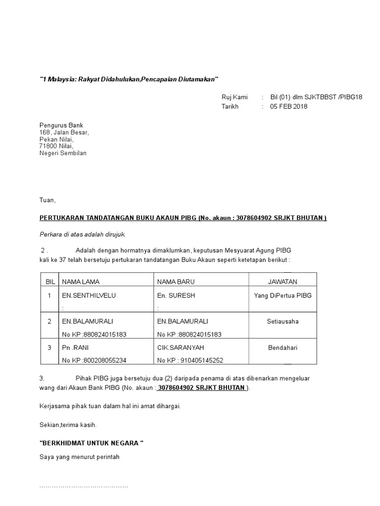 Surat Tukar Penama Akaun Bank Pibg Pdf